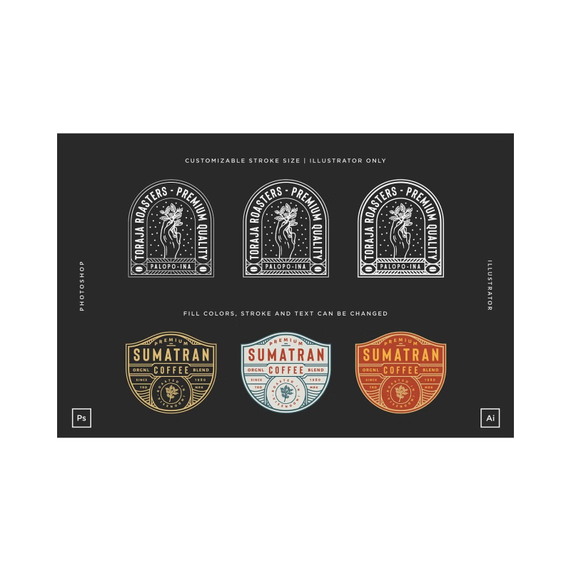 12 Coffee Logo and Badge Templates Vol.03 from us. Every text is editable and all elements are scalable, which makes it easy to modify and use them in your brand, logos, apparel, packaging, posters, etc.