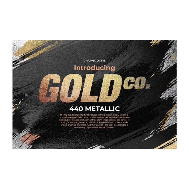 The Gold and Metallic textures included in this pack are simply stunning - from glittering gold foil to lustrous silver and copper, each texture captures the beauty of metallic finishes in all their glory. These textures are perfect for adding a touch of glamour to invitations, business cards, posters, social media graphics, and more. And that's not all - the pack also includes various paper textures and patterns.