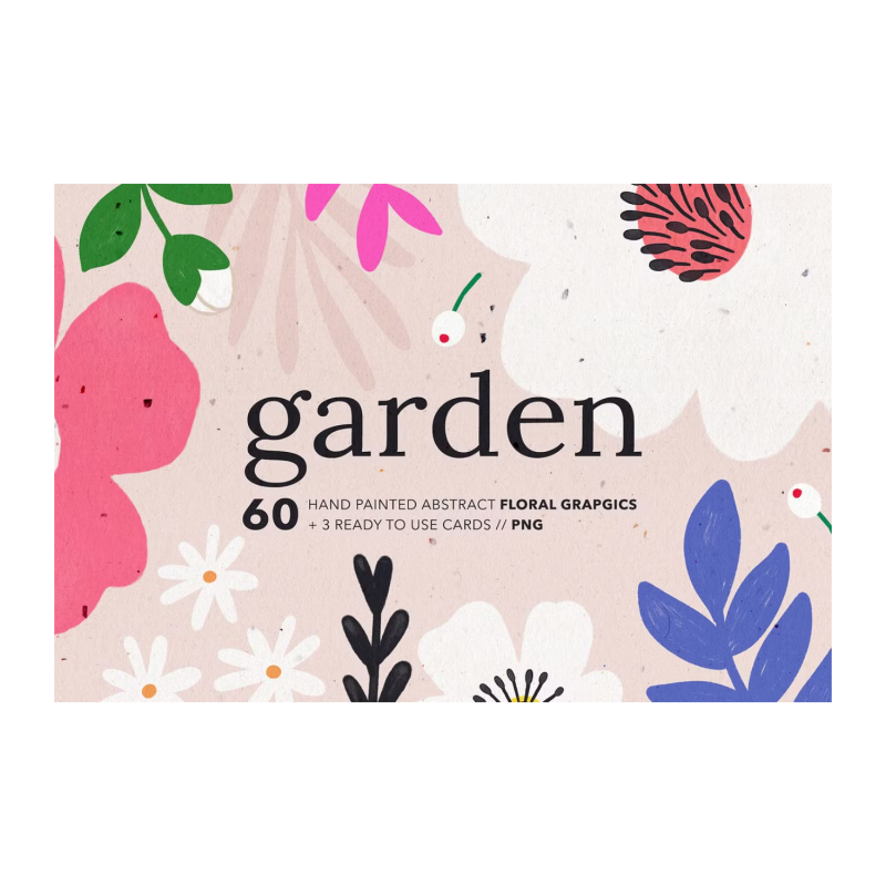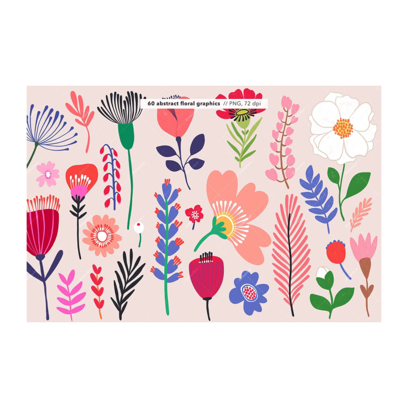 • The set includes 60 abstract floral graphics, PNG, 300 dpi, 72 dpi