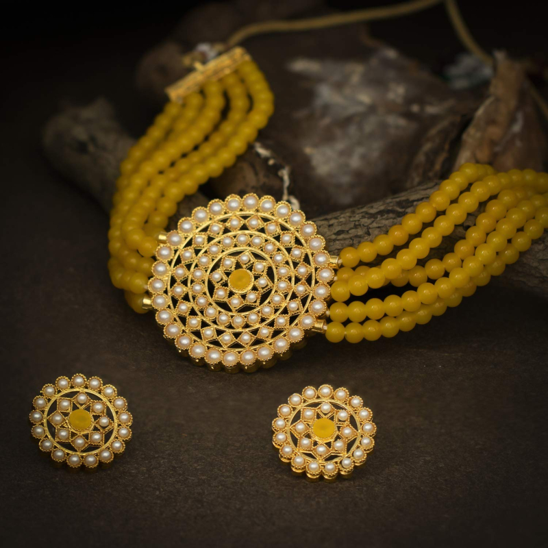 Adorable Gold Plated Pearl Choker Necklace Set for Women