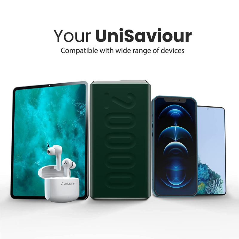 • Massive 20000mAh Lithium Polymer capacity allows you to charge your devices multiple times. It can charge iPhone 12 – 4.6 times, Samsung M11 – 2.6 times, iPad – 1.4 times