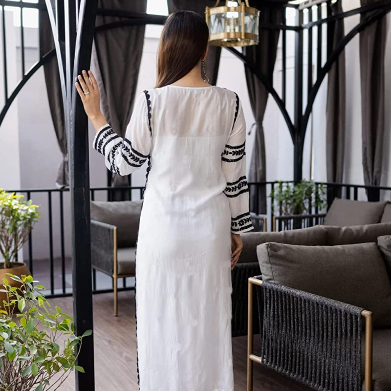 • Style: Straight || Length: Long Length || Sleeves: 3/4