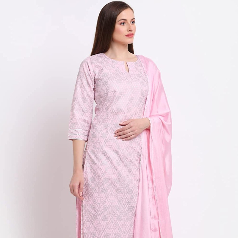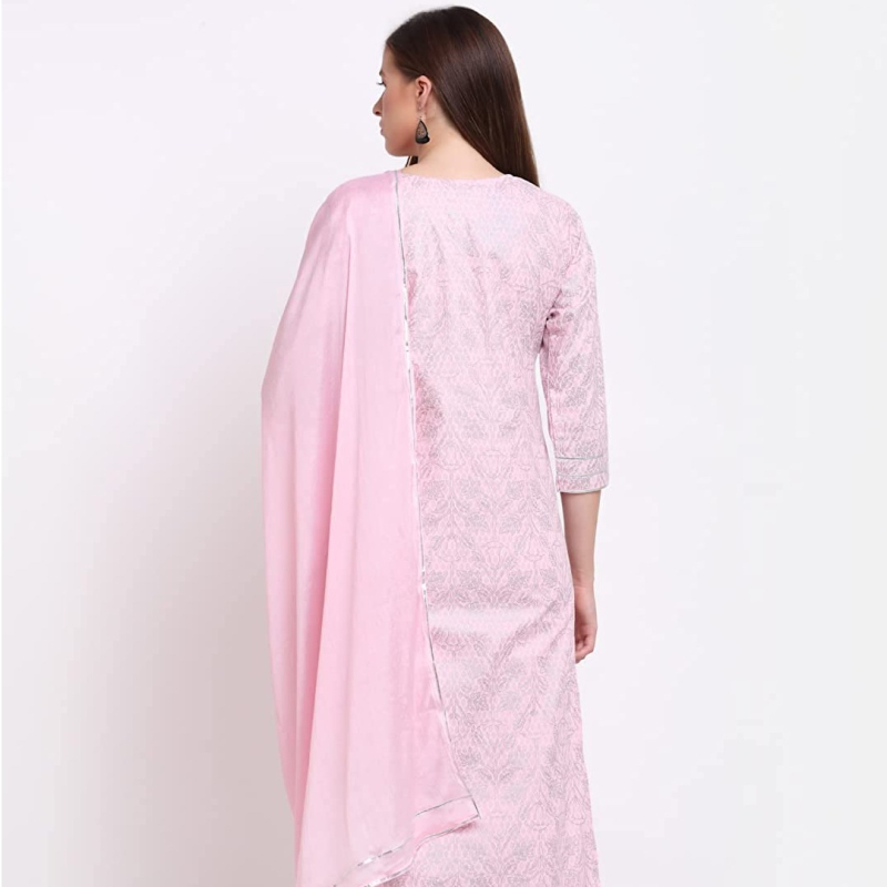 ANNI DESIGNER Women's Cotton Straight Kurta with Palazzo & Dupatta