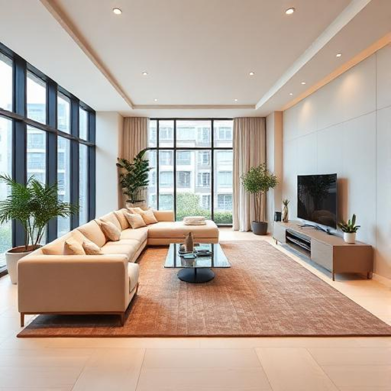- غرفة المعيشة الحديثة مع ديكورات داخلية أنيقة