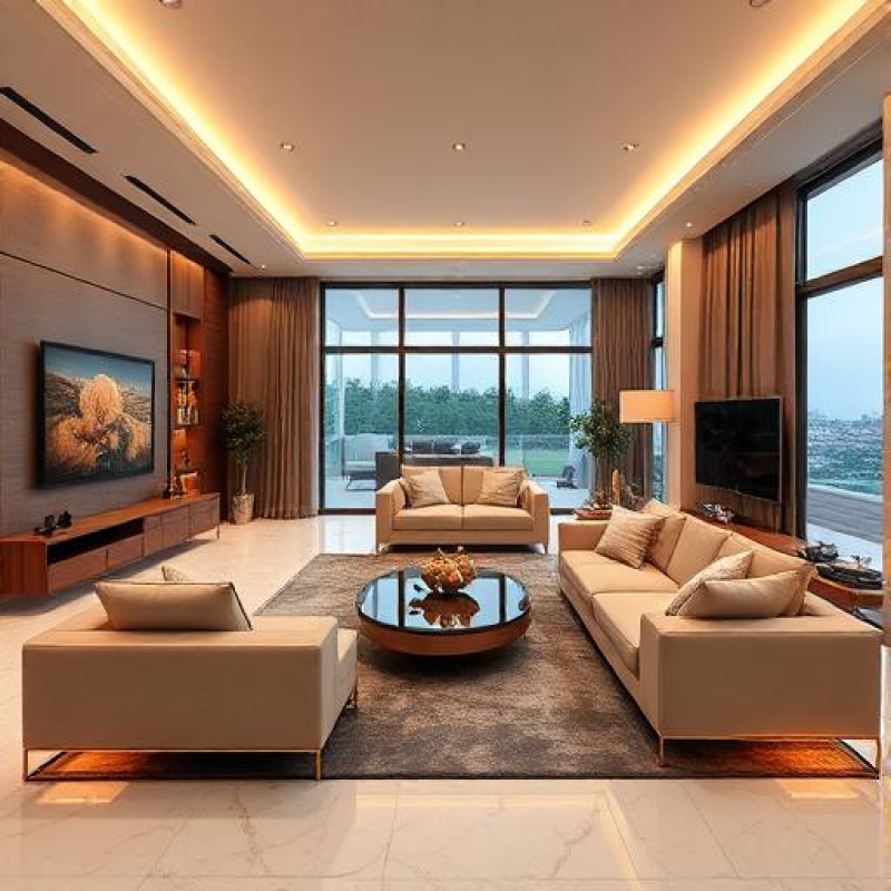 - أرضيات فاخرة وتصاميم أسقف زائفة