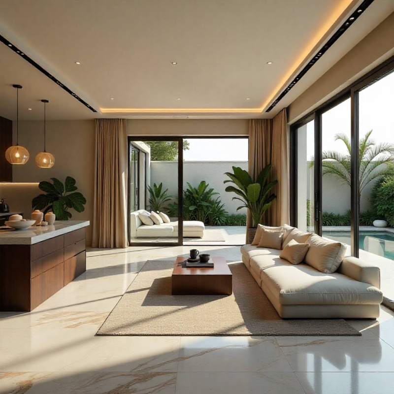 - أرضيات فاخرة وداخلية أنيقة
