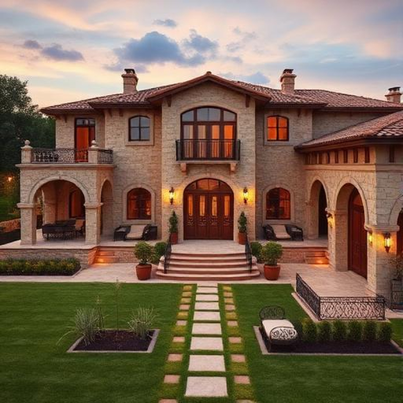 - عمارة مستوحاة من المطبخ الإيطالي مع أقواس، ألوان دافئة وعناصر فنية