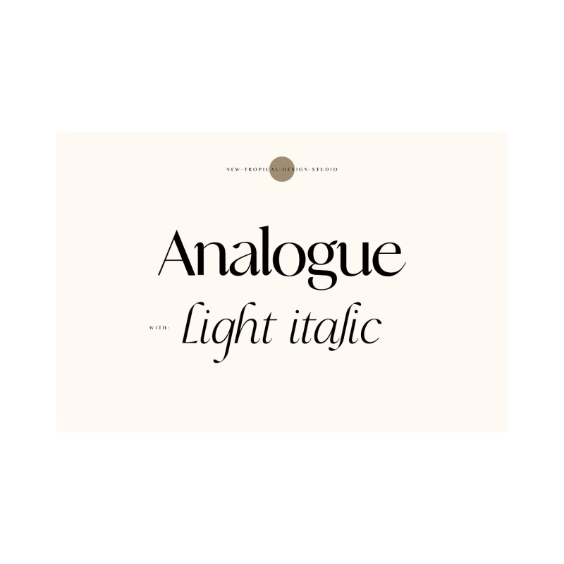 التناظرية هي كل الطبقة. خط عصري أنيق هو مزيج من serif و sans serif. إنها منحنيات ناعمة ممزوجة برموز عالية التباين تضفي عليها صفات أنثوية وذكورية. مع مائل فاتح متباين ، يعمل Analogue بشكل رائع في تصميم التخطيط لعلامات الاقتباس أو نسخة الجسم. تشكل المنحنيات الأنيقة أيضا شعارا فريدا أو إعلان رئيسي. التناظرية يأتي مع دعم متعدد اللغات أيضا.