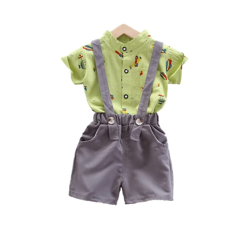 بولد N أنيقة طائرة مطبوعة أطفال نصف كم PC قميص ومريلة السراويل