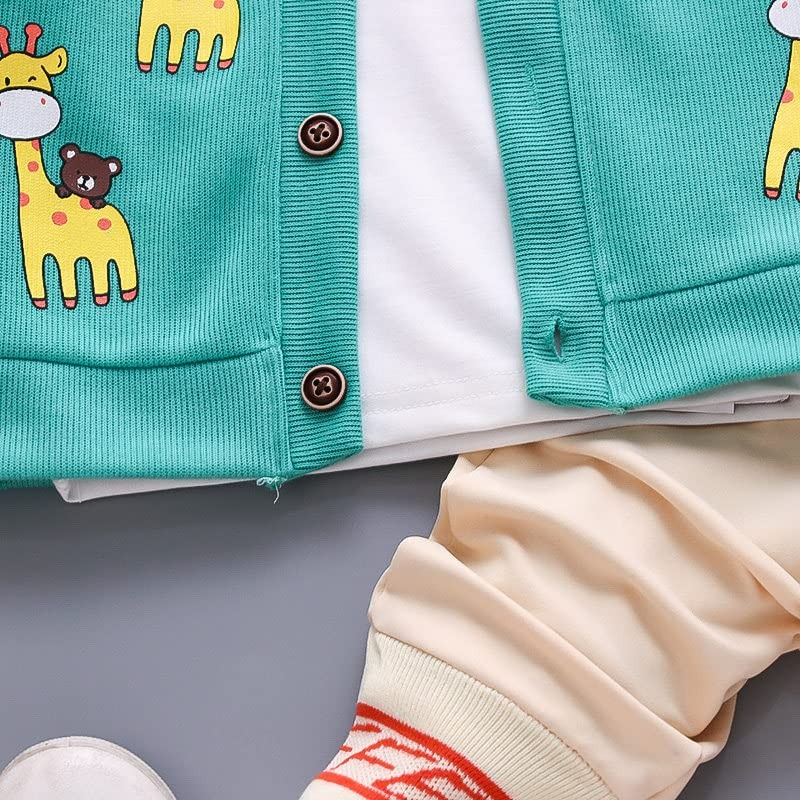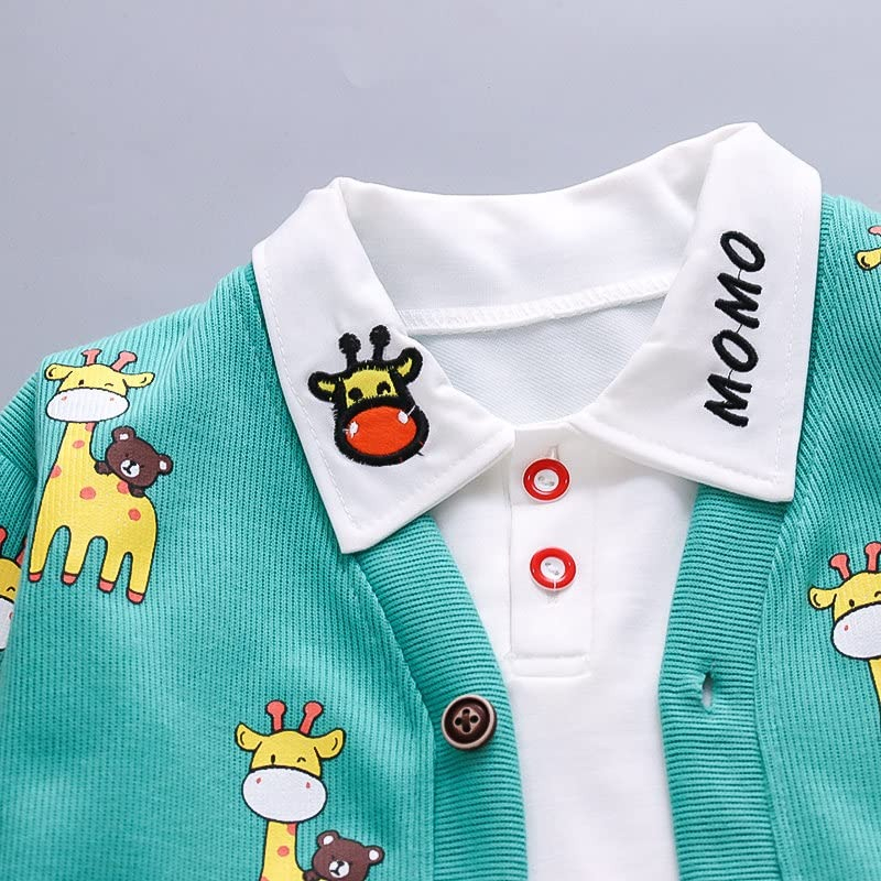 بولد N أنيقة الزرافة الكرتون طباعة بولو تي شيرت مع طبقات كارديجان سترة وسروال الشتاء