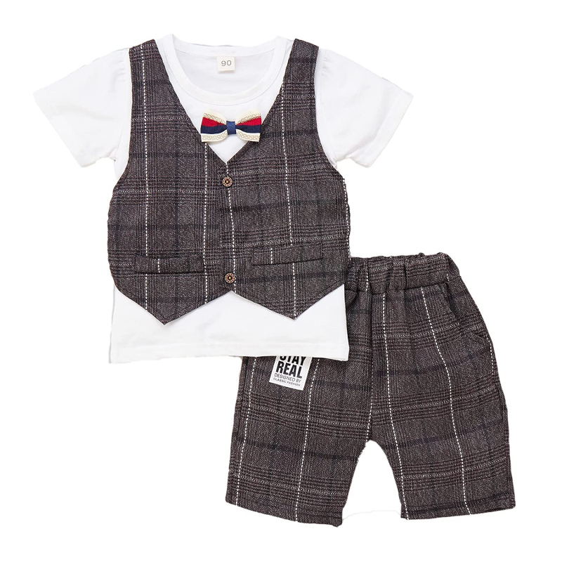جريئة N أنيقة الرسم البياني تحقق تي شيرت المرفقة صدرية وربطة عنق السراويل