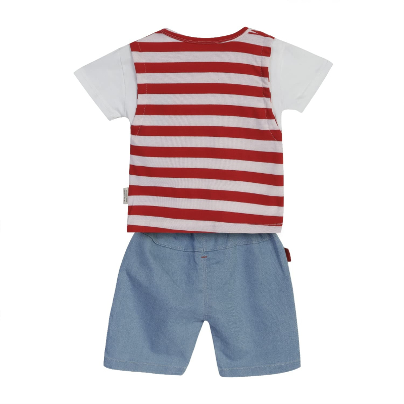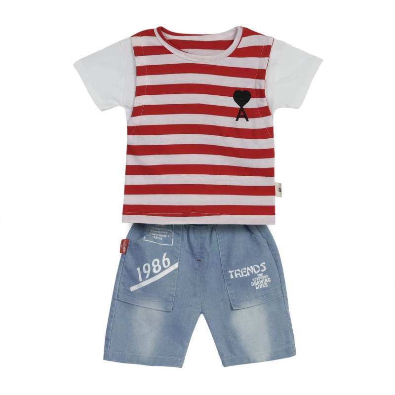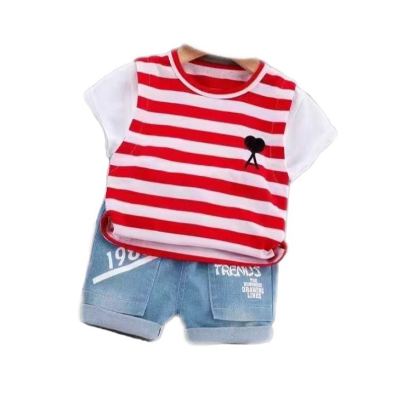 بولد N أنيقة شريط الكرتون نصف كم الأولاد تي شيرت مع الدنيم الثقيلة السراويل