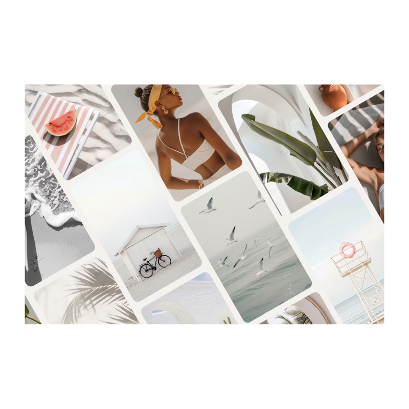 تلتقط هذه المجموعة من الصور أجواء الشاطئ والعطلة الصيفية ، وتوفر ظلالا هادئة وبيئة مريحة. تنقل كل صورة إحساسا بالسلام ونضارة نسيم البحر ، مما يجسد يوم الشاطئ المثالي. تم إنشاؤها باستخدام أحدث تقنيات الذكاء الاصطناعي المذهلة والمصنوعة يدويا.