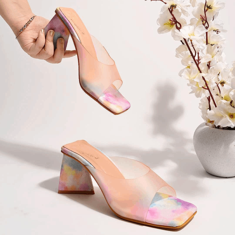 مريحة مربع اصبع القدم قوس قزح طباعة كتلة الكعب للنساء