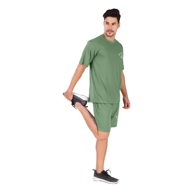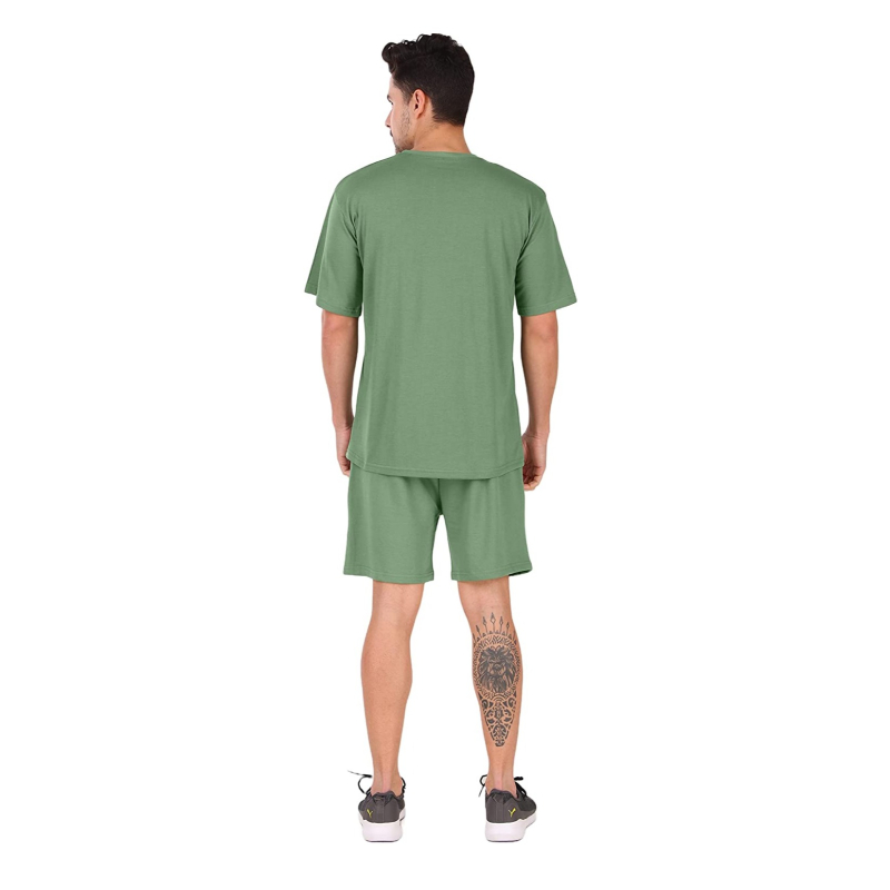 مزيج القطن عارضة جولة الرقبة Co-ord مجموعة للرجال نصف الأكمام فضفاضة تناسب تي شيرت كبيرة الحجم والسراويل القصيرة