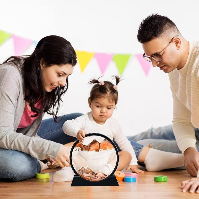 • تصميم رائع للصور الرملية المتحركة هي قطعة فنية ساحرة وديناميكية. تدوير الزجاج ، والاستمتاع برؤية الرمال التي تدور وتتحول إلى الغيوم والمناظر الطبيعية والمحيطات والجبال من الخطوط والأنماط المعقدة.