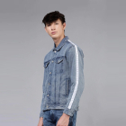كامل الأكمام مخطط الرجال الدنيم سترة