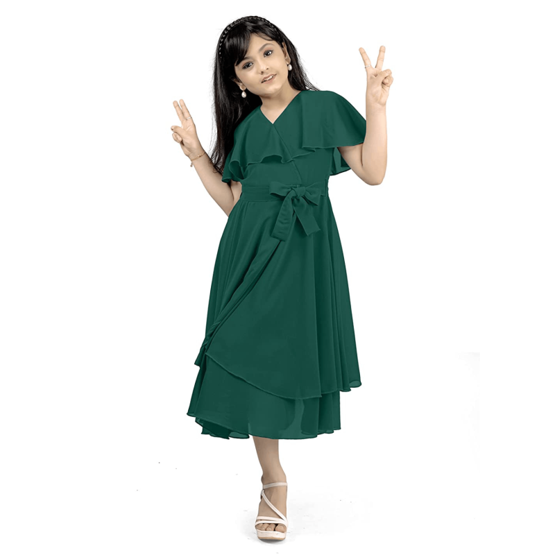 فستان جورجيت غير متماثل بطول العجل للفتاة
