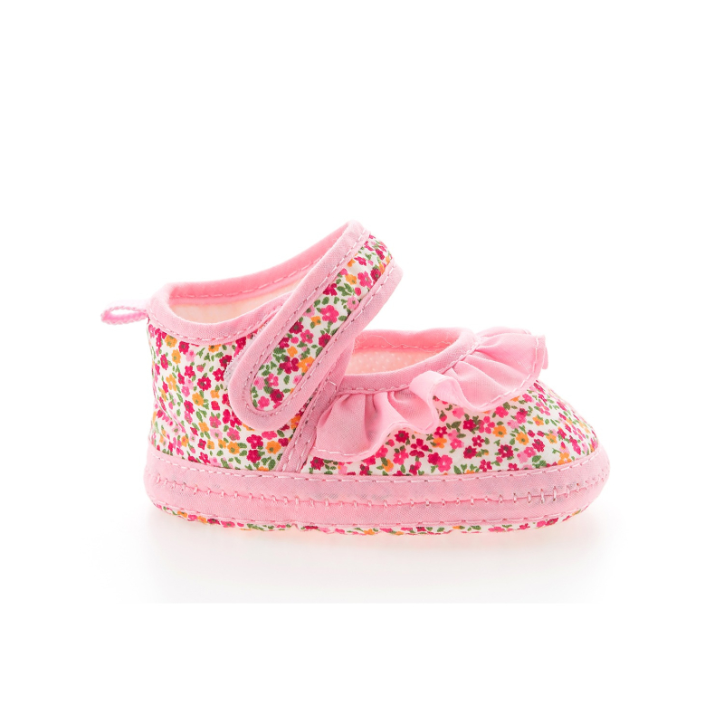 زوج من الأحذية الرياضية ذات الأصابع المستديرة الوردية والصفراء ، لديها تصميم منتظم ،