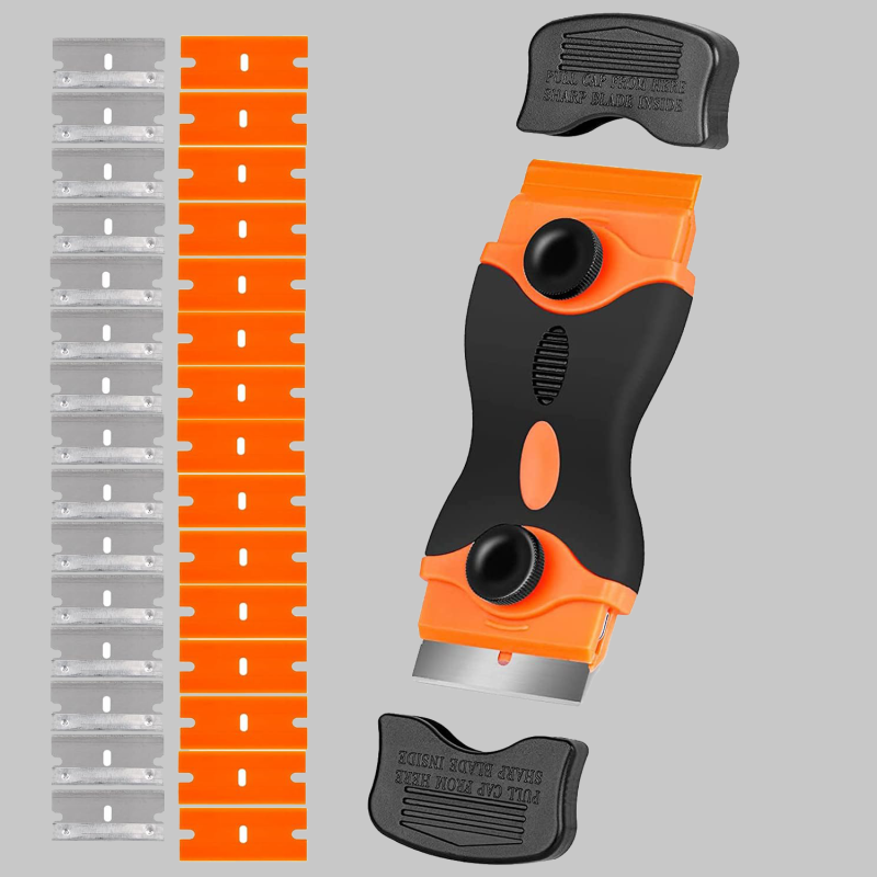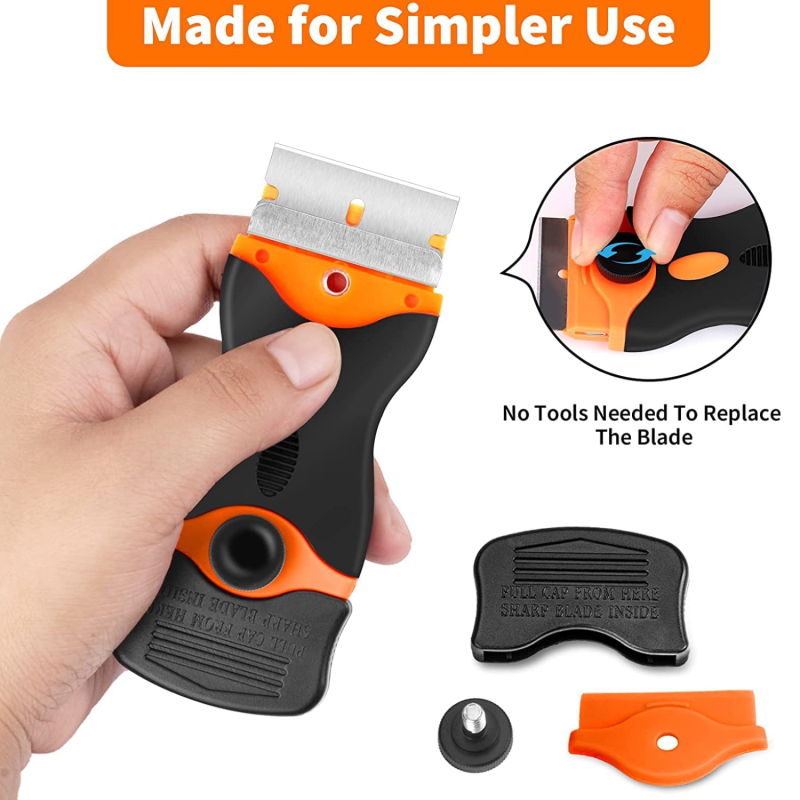 • تأتي أداة مكشطة متعددة الأغراض على الوجهين مع شفرات بلاستيكية ومعدنية يمكن أن تلبي كل من الشفرات البلاستيكية والمعدنية احتياجاتك المختلفة. تنظيف السطح الصلب أو الناعم بسهولة دون خدش.