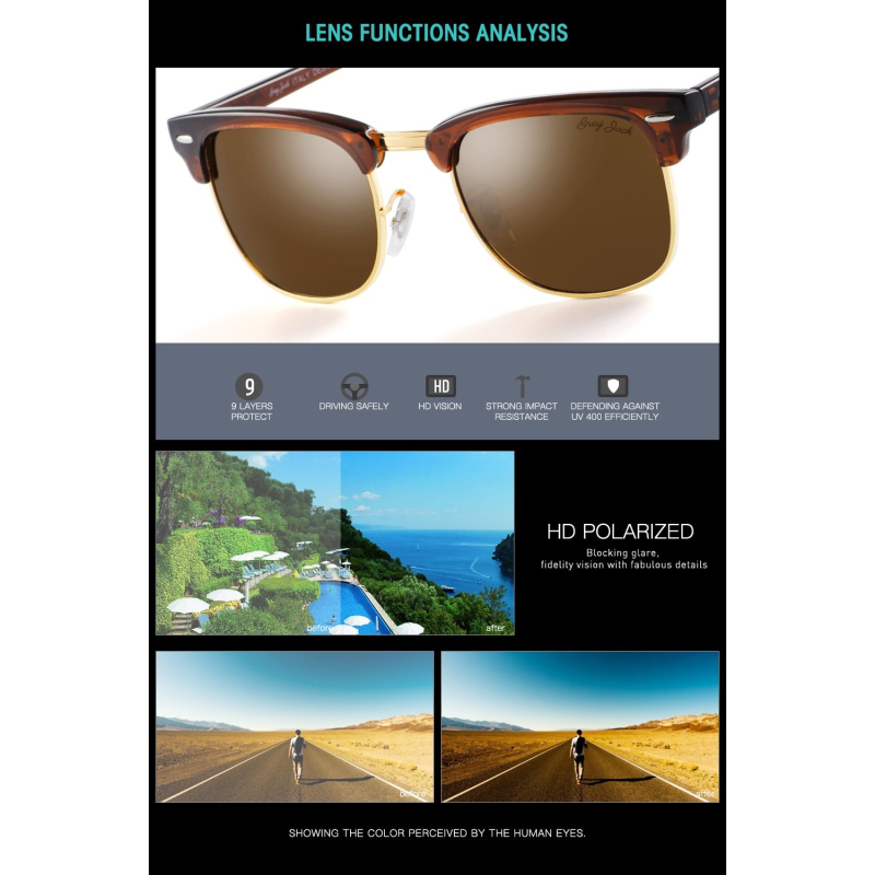 رمادي جاك كلاسيك كلوبماستر نصف الإطار النظارات الشمسية أزياء النظارات للرجال