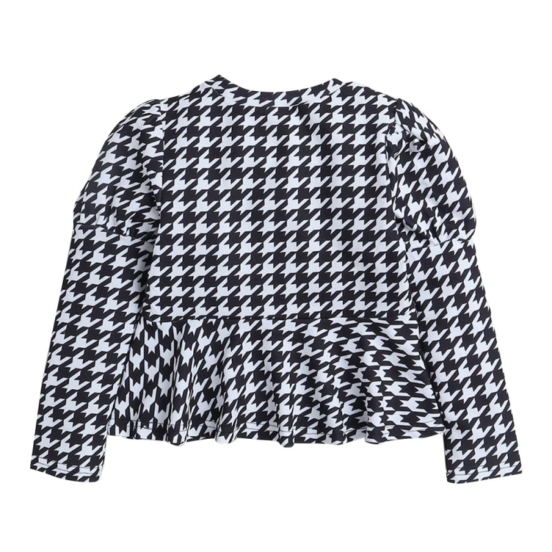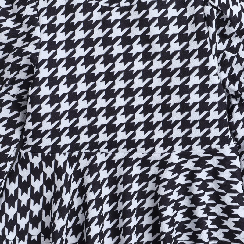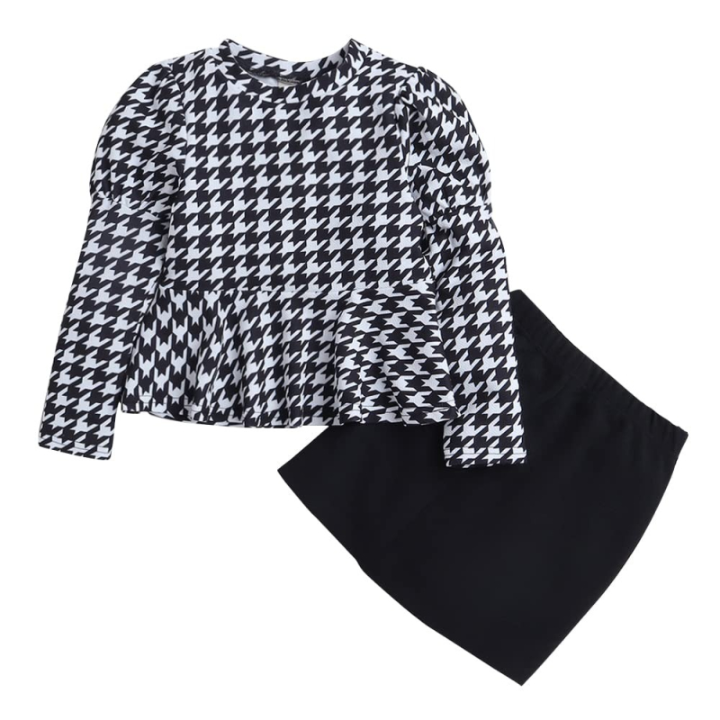الحجلة الفتيات البوليستر Houndstooth طباعة بلوزة وتنورة مجموعة في اللون الأسود