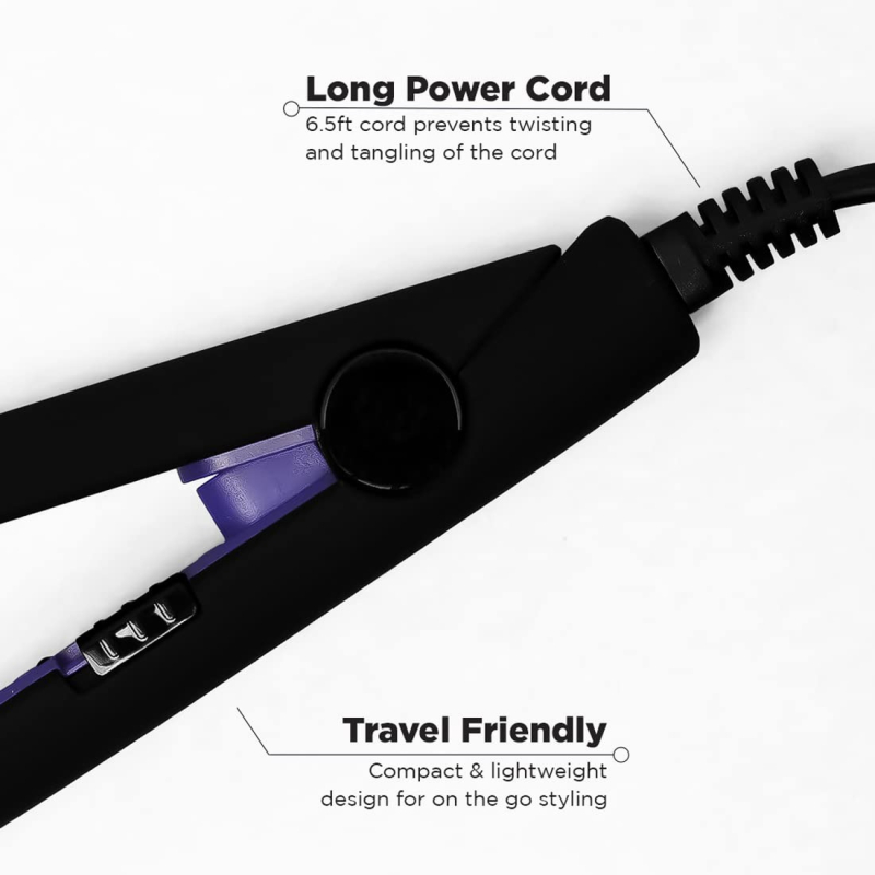 مكواة فرد الشعر إيكونيك ميني. حجم صغير ورفيق سفر مثالي. آمن على الشعر المعالج كيميائيا (أسود)