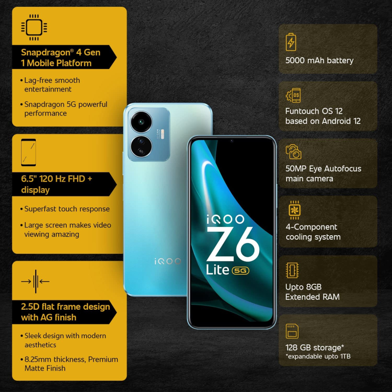 iQOO Z6 لايت 5G (أخضر ستيلر، رام 4 جيجابايت، سعة تخزين 64 جيجابايت)