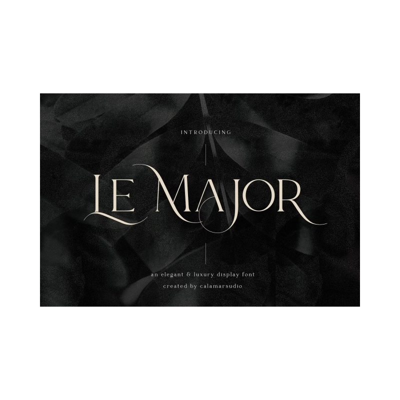 Le Major هو خط serif الأنيق الجديد الذي سيجلب في مشاريعك لمسة من الفخامة والأناقة. إنه تطابق مثالي مع الشعارات والعلامات التجارية وحرف الزفاف والدعوات وعناوين المدونات وغير ذلك الكثير. اقلب جميع المعاينات واحصل على الإلهام كما كنت أثناء إنشاء هذا الخط.