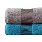 Lushomes Cotton Highly Absorbent Luxurious Large Bath Towel Set (Grey and Teal)