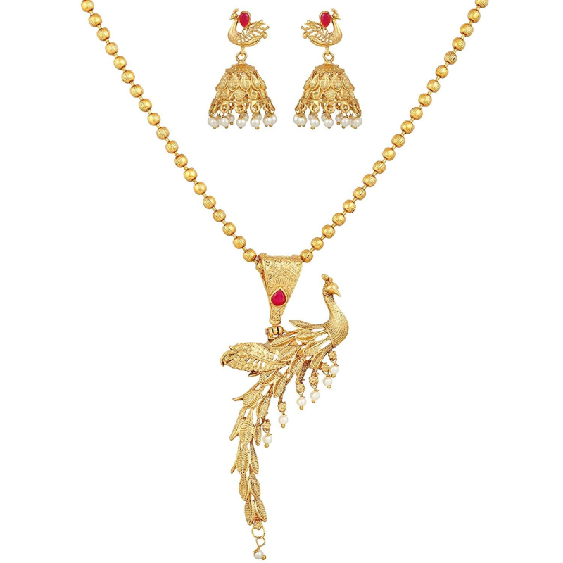 • مجموعة: أحدث الطاووس تصميم قلادة قلادة تقليدية 18k