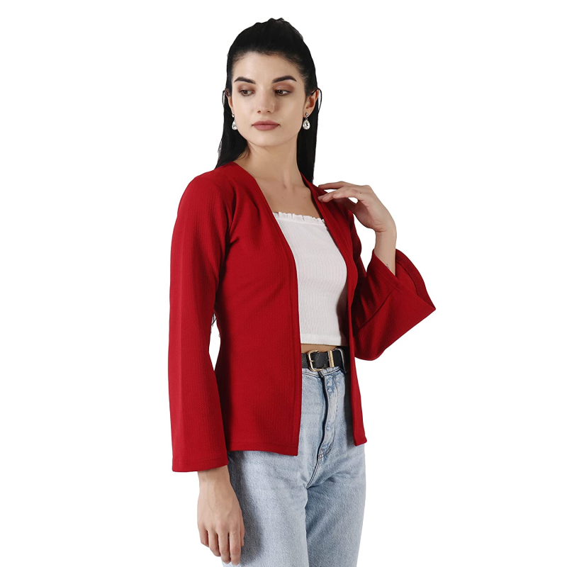 POPWINGS Women Red Regular Fit Blazer