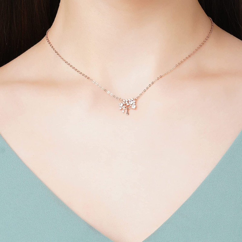 الفضة الاسترليني شجرة الحياة روز الذهب قلادة