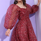 طوكيو توكيز المرأة المارون المطبوعة صالح وفستان مضيئة
