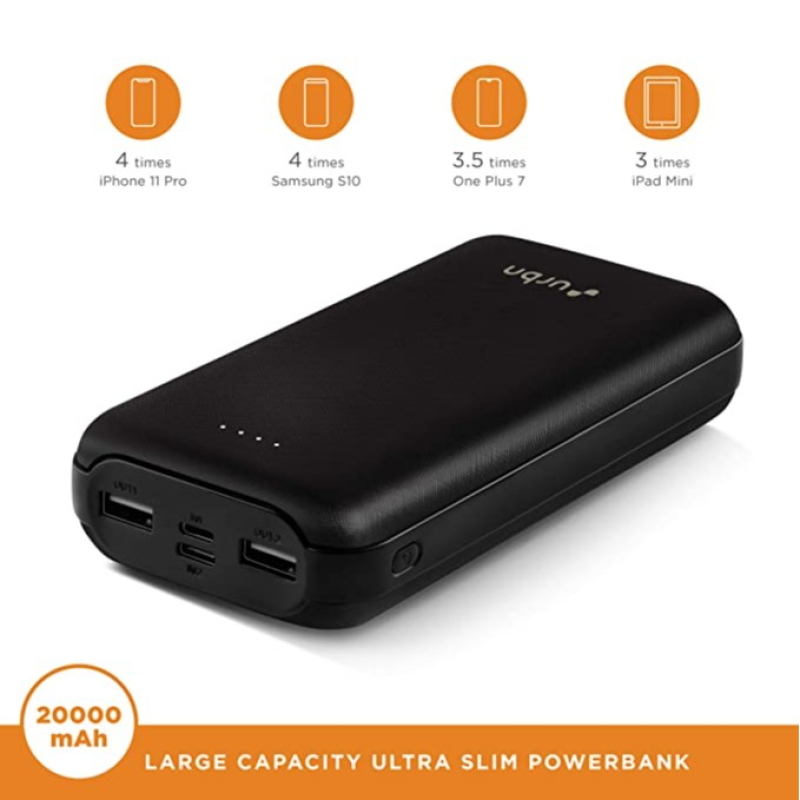 حافظ على شحن أجهزتك وتشغيلها حتى عندما تكون بعيدا عن مأخذ الطاقة من خلال الحصول على Urbn 20000 mAh Powerbank. يتيح لك منفذ الإدخال/الإخراج من النوع C شحن بنك الطاقة هذا بسرعة بالإضافة إلى جهازك المتوافق. كما يأتي مزودا بمنفذي إخراج USB ، بحيث يمكنك شحن أجهزة متعددة من خلال هذا في نفس الوقت.