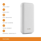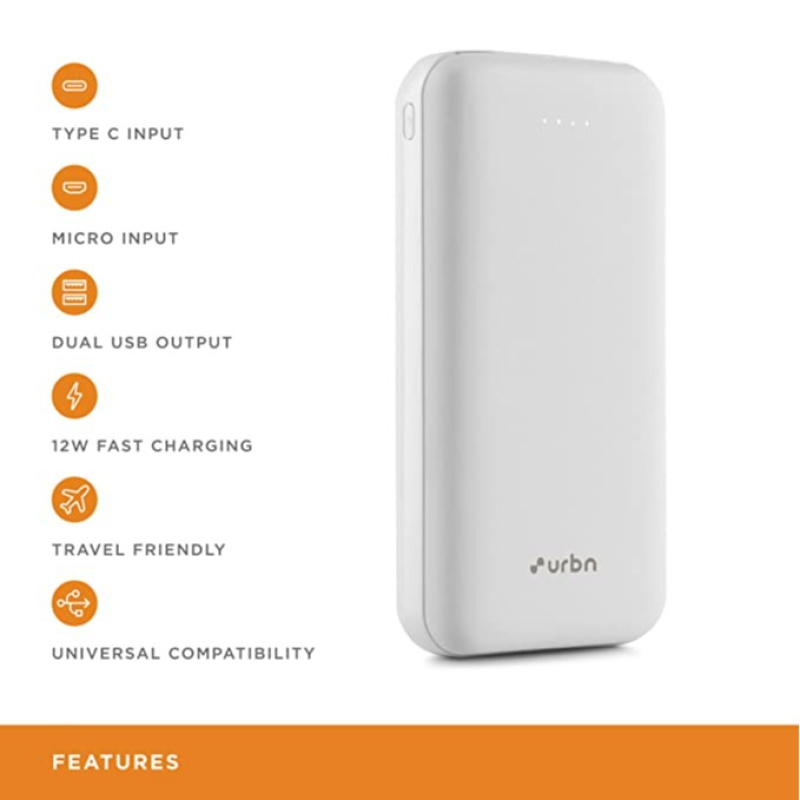 حافظ على شحن أجهزتك وتشغيلها حتى عندما تكون بعيدا عن مأخذ الطاقة من خلال الحصول على Urbn 20000 mAh Powerbank. يتيح لك منفذ الإدخال/الإخراج من النوع C شحن بنك الطاقة هذا بسرعة بالإضافة إلى جهازك المتوافق. كما يأتي مزودا بمنفذي إخراج USB ، بحيث يمكنك شحن أجهزة متعددة من خلال هذا في نفس الوقت.