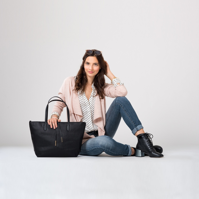 قميص كاجوال بنقشة بولكا بالأبيض والأسود، بياقة عريضة، أزرار فضفاضة، أكمام طويلة عادية، حافة منحنية