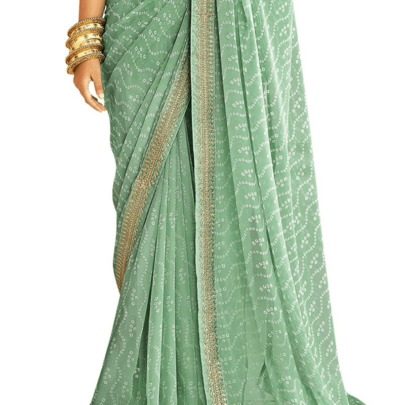 المرأة Bandhani الطباعة والتطريز العمل في الدانتيل جورجيت ساري
