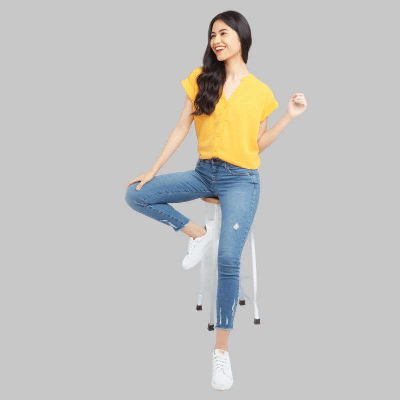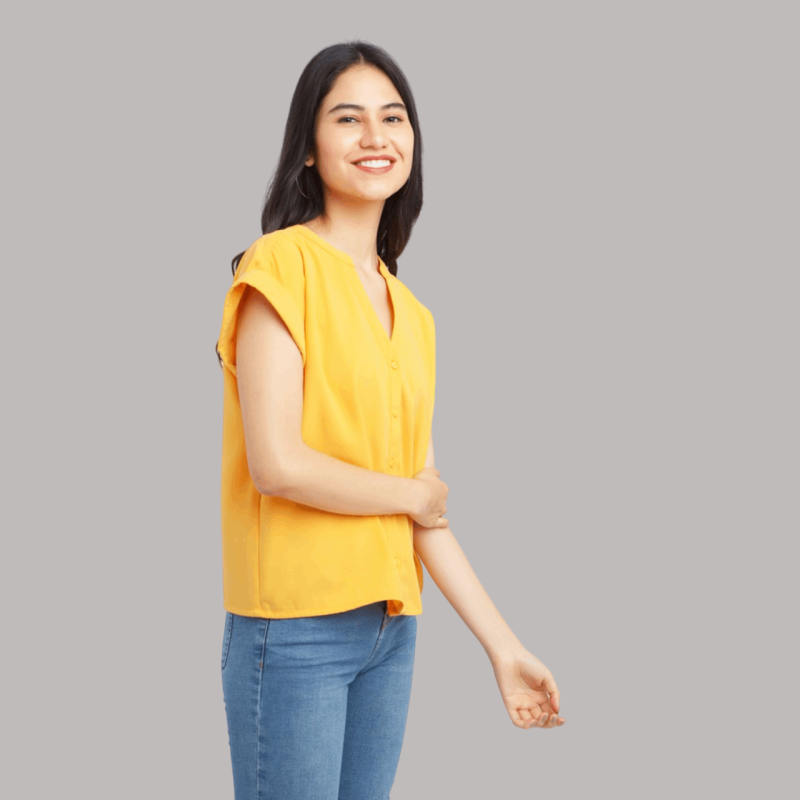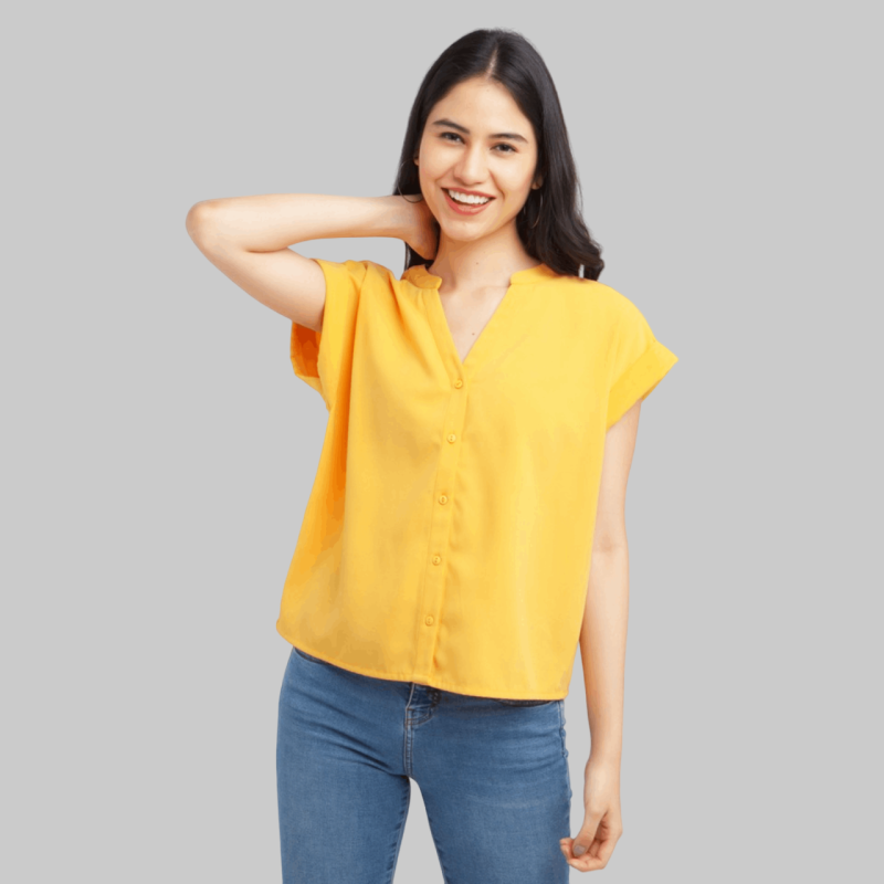 BIBA Solid Polyester Mandarin Top