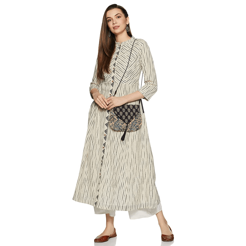 BIBA Women Mandarin Collar Stripe Kurti