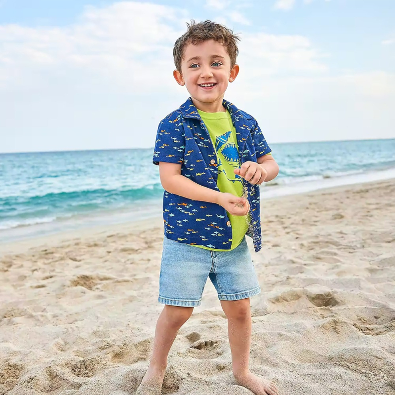 • Available in five different colors and trendy floral, dino, shark prints, this half-sleeve shirt makes for a great pick be it playdate, special occasion, party or any outing.