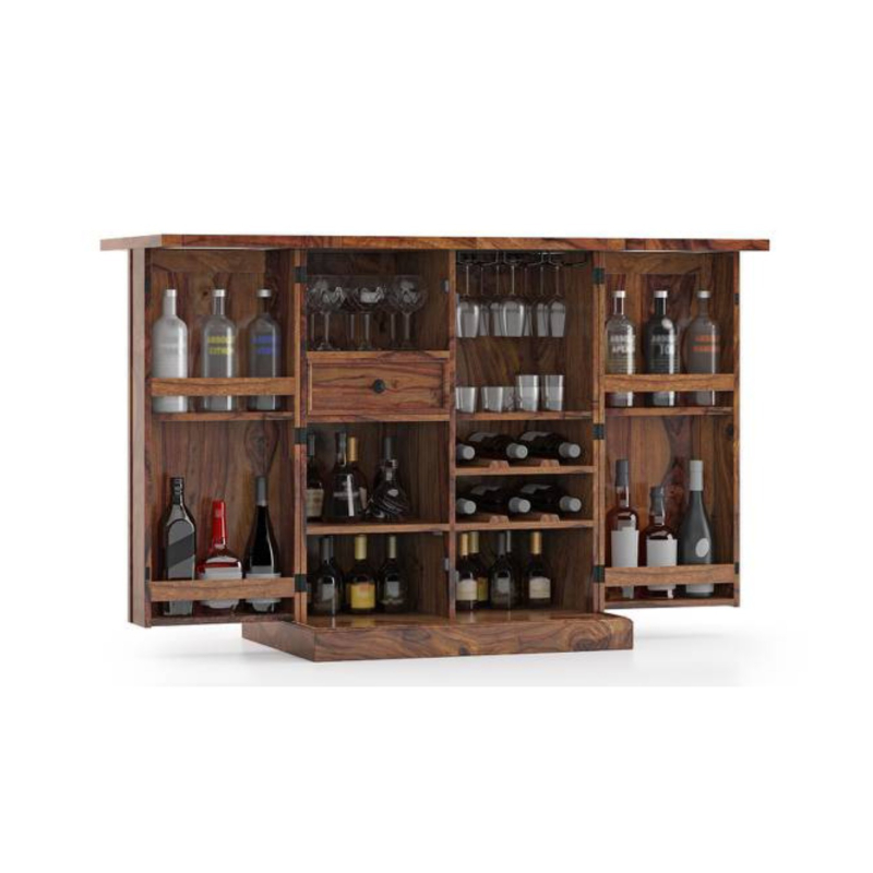 Caledonia Solid Wood Bar Cabinet In Teak Finish