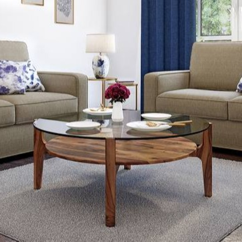Cayman Round Solid Wood Coffee Table In Teak Finish