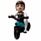• Stunt riders step on electric tricycle. Cute rider. Cool three electric tricycle.