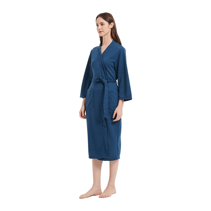 The women's bathrobes adopt improved non-cotton waffle fabric, they will be more soft, breathable, and lightweight than the one that contains cotton, and there will be no shrinkage after washing.