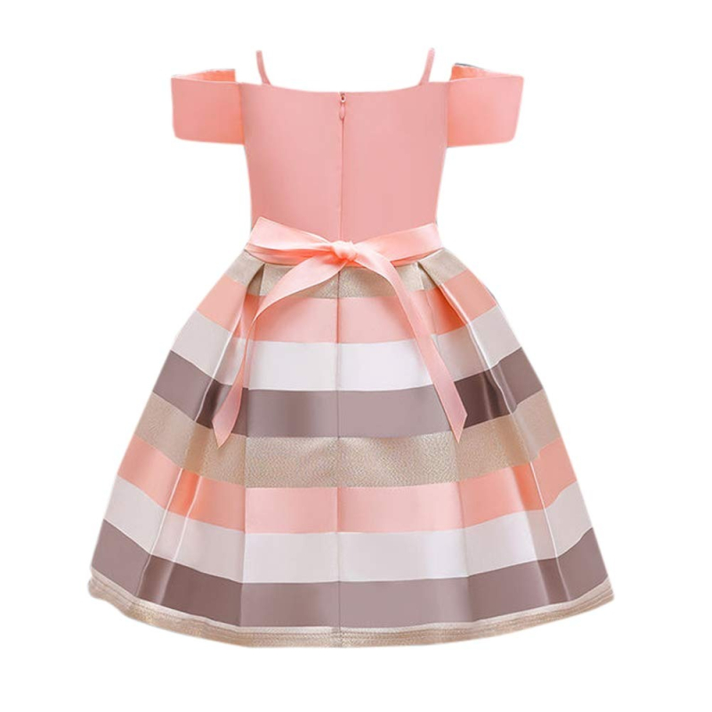 Girls Cotton and Polyester Stripe Print Party Dress in Pink Color