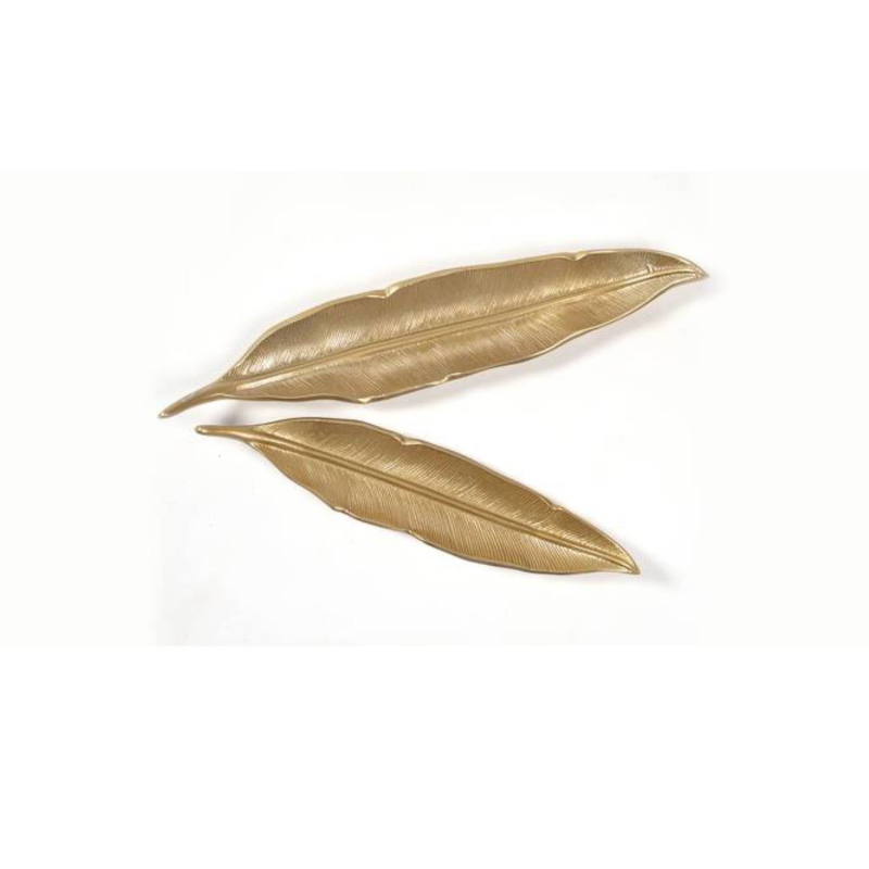• Name: Antique Feather Decor Dishes -Set of 2 (Gold)