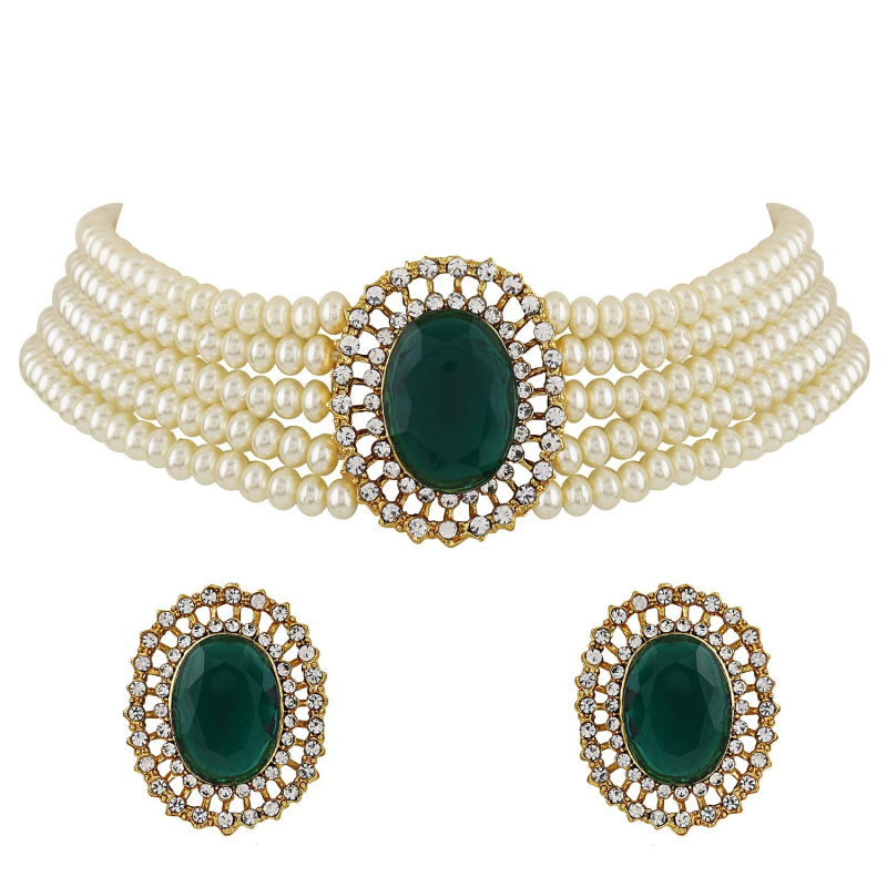 Gold Plate Stylish Fancy Choker Traditional Pearl Necklace