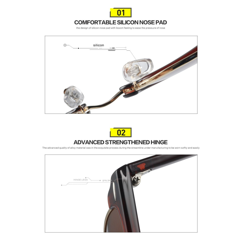 HIGH QUALITY METAL ANTIOXIDANT PLATING FRAME - Metal alloy frame with sturdy legs and spring-loaded hinges that are ultra-lightweight yet strong and durable.; Antioxidant plating,anti-allergy & skin-friendly tested,harmless to skin; It comes with adjustable silicon nose pads which allows for maximum comfort.
