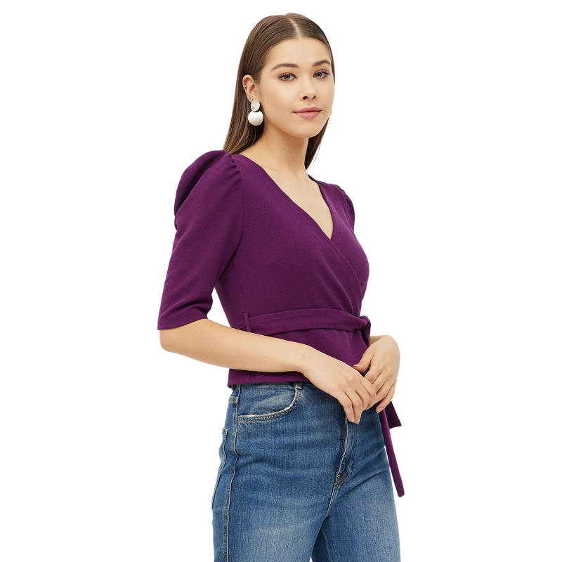 V-Neck Puff Sleeve Wrap Top